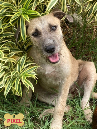 Elle est née le 10 février 2023 et pèse 12,5kg. Elle pèsera environ 25kg à l’âge adulte. Bien que craintive, Pixel est sociable avec les humains, adultes et enfants. Elle apprécie les câlins. Elle accueille sa tatie en faisant la fête. Elle est adorable, calme et gourmande.