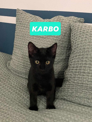 Karbo est un très beau chaton noir mâle de 3 mois, très dynamique et câlin.