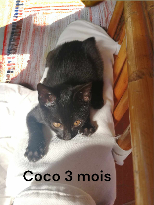Coco, 2 mois, est un petit mâle très vif, très sociable. Très gourmand. Facile à vivre, très affectueux. Très joueur