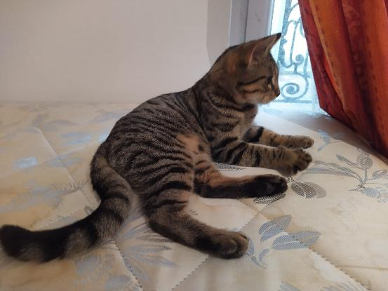 Aujourd’hui c’est un chaton câlin et sociable et joueur . C’est un gros gourmand aussi .