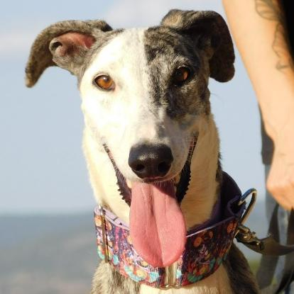Galta est un vrai amour de galga, elle ne pourrait pas être plus affectueuse. Elle s’est adaptée rapidement et au refuge elle s’est transformée en notre ombre, marchant toujours derrière nous, cherchant des câlins et tellement heureuse quand on lui en fait. Les promenades sont un vrai moment de connexion, elle adore et est toujours attentive pour « voler » quelques caresses. Elle se comporte très bien en voiture. Cette chienne est parfaite et son physique nous laisse bouche bée : son port est impressionnant et elle est très grande pour une femelle. Nous n’avons que de belles paroles pour décrire notre Galta.