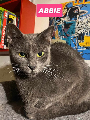 Robe grise avec des yeux jaunes et verts. Elle est assez petite et mince.