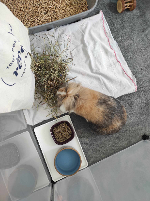 En quelques mots : Sa famille d'accueil le décrit comme étant un lapin attachant, tout doux, tellement mignon, curieux, gentil. Toutefois pas touche à ses gamelles ou jouets, c'est à lui ! Il se laisse très bien manipuler et il adore les caresses et bisous qu'il récompensera avec des petits grincements de dents. Gaston mange de tout et est propre