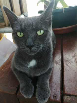Abandonnée à cause des vacances, je suis une vraie déesse majestueuse typée chartreuse. J’adore les câlins et je parle à mon humain tête contre tête avec plein de miaous. Je suis curieuse et extravertie, une vraie maîtresse de maison.