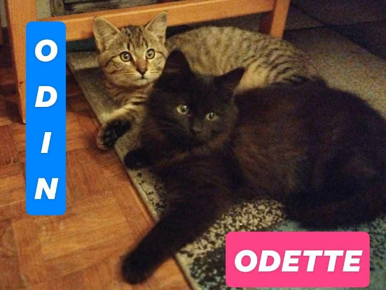 Chaton tigré élégant protecteur envers sa sœur Odette, Odin est tout aussi calme et affectueux qu’elle, la timidité en moins. Ces deux-là sont inséparables et partagent tout ensemble, du petit déjeuner à la sieste, en passant par des séances de jeu et de câlins avec leur humain bien sûr, dans une ambiance ronronnante.