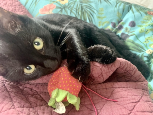 Ninja est un petit mâle de 4 mois, un peu timide au départ, il devient rapidement affectueux et câlin. Il donne des coups de tête ou de nez pour faire des câlins. Il suçote l'oreille de ses humains et patouille beaucoup les coussins. Il n'aime pas trop être porté, sauf s'il a peur, il se réfugie dans les bras. Il est très joueur