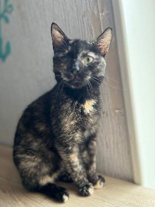Uttara a 4 mois, cette minette est très câline, elle s'entend très bien avec ses congénères, le chien et adore les enfants.