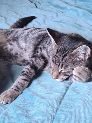 UBER....superbe tigrou de 5 mois révolus. Trouvé dans un bois avec son frère et sa soeur....tous deux adoptés ensemble UBER attend son tour!
