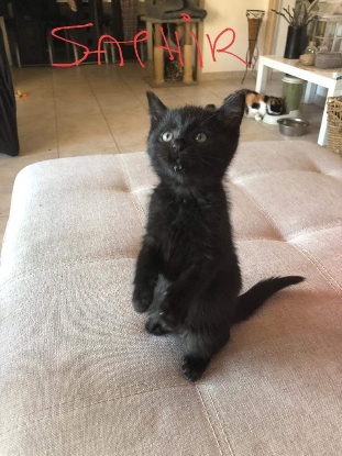 A l adoption Saphir petite chatonne de 7 semaines, sociable, propre et joueuse. Proche de l homme elle est aussi habituée aux enfants, chats et chiens. Visible sur Bollène