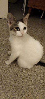 Coquine, est une petite minette de 8 mois, très jolie, douce et discrète. Elle a été trouvée affamée au bas d’un immeuble. Elle s'est laissée attraper très facilement, les ronrons et câlins qui ont suivi sont la preuve qu'elle a été abandonnée.