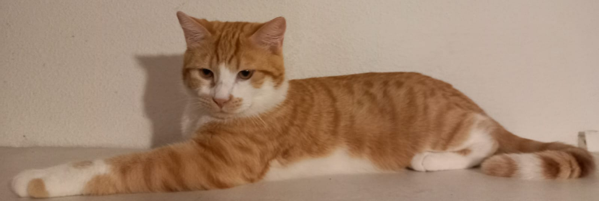 C'est un jeune chat doux, gentil et joueur qui adore les grattouilles sur le ventre.