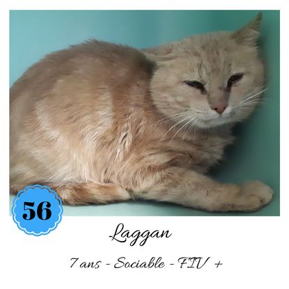 URGENCE EUTHANASIE ! Laggan est un mâle de 7 ans sociable FIV+ qui vous attend dans une fourrière du 56. ATTENTION SORTIE AU PLUS TARD LE 24/01/2020 (avant euthanasie) ! Pour adopter, c'est facile : ➡️ On se rend sur la page facebook d'Urgence Fourrière de Bretagne (UFB) -> https://www.facebook.com/sosfourrieresbreizh/ ➡️ On vient en message privé sur la page UFB ➡️ On remplit le questionnaire ➡️ Si le questionnaire est validé, on se rend disponible pour la pré-visite ➡️ On se rend aussi disponible pour venir chercher le loulou en fourrière Les chats sortent de fourrière primo-vaccinés et identifiés. Restera à charge de l’adoptant le rappel de vaccin et la stérilisation qui est OBLIGATOIRE. Les femelles en fourrière ayant été trouvées dans la rue, il y a fort à parier que nombre d'entre elles en âge de l'être soient gestantes ... ---- A PROPOS D'URGENCE FOURRIERE DE BRETAGNE (UFB) Nous sommes un COLLECTIF d'ASSOCIATIONS DE PROTECTION ANIMALE (qui rassemble notamment Moustaches et Compagnie, Bêtes de Scène, les Pachas, Chats Libres de Berné, etc, etc....) Le BUT de ce collectif d'associations est donc de SORTIR ces animaux des fourrières surchargées en les faisant ADOPTER de manière LEGALE par des familles ou en leur trouvant des FAMILLES D'ACCUEIL lorsque des places en association se libèrent.