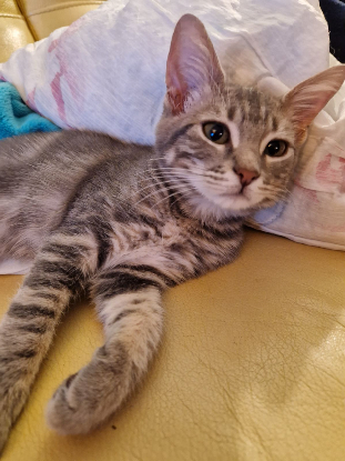 Milou est un chaton de 3 mois, très sociable, qui vit en famille d'accueil avec ses frères et sœurs. C'est le frère de Starsky.