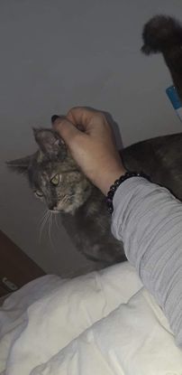 Cyrène / Femelle / 6 mois - Sortie de l'un de nos site de nourrissage cette jolie minette tout d'abord très sauvageonne se révèle adorer les câlins. Elle n'a pas encore fini sa quarantaine et sa socia mais attend d'ores et déjà sa future famille d'adoption.
