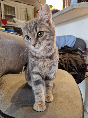 Upsili est un chaton de 3 mois et demi, très sociable et gentil. Il fait partie d'une fratrie de 4 chatons. Ulina est sa sœur.