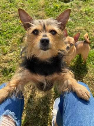 RUBY (noire et fauve) est une femelle Yorkshire croisée Pinscher âgée de 6 ans.