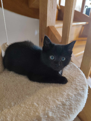 C'est un petit chaton qui s'est révélé timide à son arrivée dans sa nouvelle famille mais qui avec de la patience et de la douceur se révèle câlin et pot de colle. Comme tous les chatons, il aime les moments de jeux. U'too a rencontré ses copains chats de la maison et tout se passe merveilleusement bien.