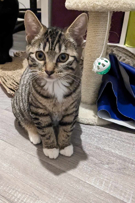 Uma est une chatonne épanouie auprès de sa famille d'accueil. Elle est câline et adore les caresses. C'est une petite chatte joueuse avec ses frères er sa soeur et elle est dynamique. Uma est une gourmande qui raffole des croquettes. Elle ne laisse jamais sa place autour de la gamelle.