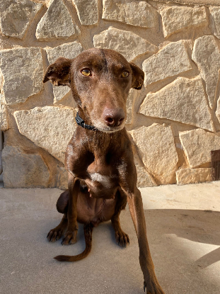 Gala est un peu timide à la première approche, comme toute bonne podenca qu'elle est ! Juste le temps d'observer un peu, de comprendre qu'on ne lui veut aucun mal et elle prend confiance. Une fois détendue, on ddécouvre une chienne joyeuse et affectueuse. Elle adore les enfants. Gala vit en famille d'accueil avec d'autres chiens avec lesquels elle s'entend très bien. Quand une partie de jeu commence, elle est présente pour participer ! Elle sait également très bien marcher en laisse.