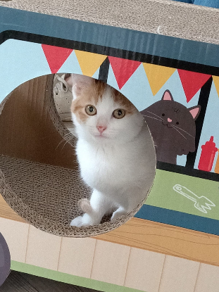 Loumi à 5 mois. Elle est plus grande que sa sœur . Elle ne se laisse pas attraper, mais se laisse caresser lorsqu'elle mange. Elle est encore craintive mais elle prend confiance de plus en plus en l'humain grâce à praline. Loumi est curieuse, agile et très observatrice , elle aime s'installer près de nous pour regarder ce que l'on fait et attend qu'on joue avec elle. Elle apprécie particulièrement qu'on lui lance des petits jouets. Elle est gourmande, et rêve de partie de chasse à la extérieure avec sa sœur. Elle tolère les enfants ,si elle n'est pas embêtée. C'est une chatonne qui ne doit pas être brusquée, il faudra lui laisser du temps pour qu'elle vous accorde sa confiance.