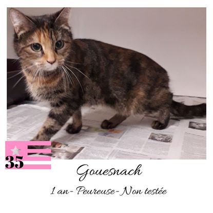 URGENCE EUTHANASIE ! Gouesnach est une femelle de 1an peureuse (un comportement normal en situation de fourrière) qui vous attend dans une fourrière du 35. ATTENTION SORTIE AU PLUS TARD LE 7/02/2020 (avant euthanasie) ! Pour adopter, c'est facile : ➡️ On se rend sur la page facebook d'Urgence Fourrière de Bretagne (UFB) -> https://www.facebook.com/sosfourrieresbreizh/ ➡️ On vient en message privé sur la page UFB ➡️ On remplit le questionnaire ➡️ Si le questionnaire est validé, on se rend disponible pour la pré-visite ➡️ On se rend aussi disponible pour venir chercher le loulou en fourrière Les chats sortent de fourrière primo-vaccinés et identifiés. Restera à charge de l’adoptant le rappel de vaccin et la stérilisation qui est OBLIGATOIRE. Les femelles en fourrière ayant été trouvées dans la rue, il y a fort à parier que nombre d'entre elles en âge de l'être soient gestantes ... ---- A PROPOS D'URGENCE FOURRIERE DE BRETAGNE (UFB) Nous sommes un COLLECTIF d'ASSOCIATIONS DE PROTECTION ANIMALE (qui rassemble notamment Moustaches et Compagnie, Bêtes de Scène, les Pachas, Chats Libres de Berné, etc, etc....) Le BUT de ce collectif d'associations est donc de SORTIR ces animaux des fourrières surchargées en les faisant ADOPTER de manière LEGALE par des familles ou en leur trouvant des FAMILLES D'ACCUEIL lorsque des places en association se libèrent.