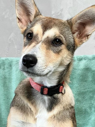 Elle est âgée de 4 mois. Elle pèse actuellement 11 kilos. Elle sera de moyenne taille. Elle aura besoin de beaucoup de présence en journée pour son bien être et son bon épanouissement. Son éducation reste à parfaire. Elle est très équilibrée, à l'aise dans ses patounes. Elle pourra vivre en famille avec d'autres chiens et des chats. Elle est propre en intérieur. Elle se comporte bien en voiture.
