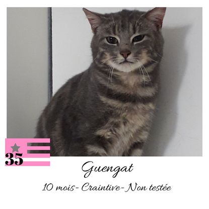 URGENCE EUTHANASIE ! Guengat est une femelle de 10 mois craintive (un comportement normal en situation de fourrière) qui vous attend dans une fourrière du 35. ATTENTION SORTIE AU PLUS TARD LE 7/02/2020 (avant euthanasie) ! Pour adopter, c'est facile : ➡️ On se rend sur la page facebook d'Urgence Fourrière de Bretagne (UFB) -> https://www.facebook.com/sosfourrieresbreizh/ ➡️ On vient en message privé sur la page UFB ➡️ On remplit le questionnaire ➡️ Si le questionnaire est validé, on se rend disponible pour la pré-visite ➡️ On se rend aussi disponible pour venir chercher le loulou en fourrière Les chats sortent de fourrière primo-vaccinés et identifiés. Restera à charge de l’adoptant le rappel de vaccin et la stérilisation qui est OBLIGATOIRE. Les femelles en fourrière ayant été trouvées dans la rue, il y a fort à parier que nombre d'entre elles en âge de l'être soient gestantes ... ---- A PROPOS D'URGENCE FOURRIERE DE BRETAGNE (UFB) Nous sommes un COLLECTIF d'ASSOCIATIONS DE PROTECTION ANIMALE (qui rassemble notamment Moustaches et Compagnie, Bêtes de Scène, les Pachas, Chats Libres de Berné, etc, etc....) Le BUT de ce collectif d'associations est donc de SORTIR ces animaux des fourrières surchargées en les faisant ADOPTER de manière LEGALE par des familles ou en leur trouvant des FAMILLES D'ACCUEIL lorsque des places en association se libèrent.