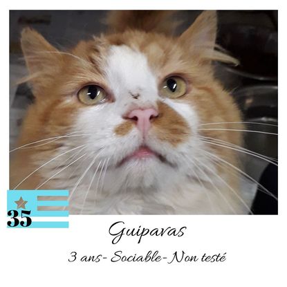 URGENCE EUTHANASIE ! Guipavas est un matou de 3 ans sociable qui vous attend dans une fourrière du 35. ATTENTION SORTIE AU PLUS TARD LE 7/02/2020 (avant euthanasie) ! Pour adopter, c'est facile : ➡️ On se rend sur la page facebook d'Urgence Fourrière de Bretagne (UFB) -> https://www.facebook.com/sosfourrieresbreizh/ ➡️ On vient en message privé sur la page UFB ➡️ On remplit le questionnaire ➡️ Si le questionnaire est validé, on se rend disponible pour la pré-visite ➡️ On se rend aussi disponible pour venir chercher le loulou en fourrière Les chats sortent de fourrière primo-vaccinés et identifiés. Restera à charge de l’adoptant le rappel de vaccin et la stérilisation qui est OBLIGATOIRE. Les femelles en fourrière ayant été trouvées dans la rue, il y a fort à parier que nombre d'entre elles en âge de l'être soient gestantes ... ---- A PROPOS D'URGENCE FOURRIERE DE BRETAGNE (UFB) Nous sommes un COLLECTIF d'ASSOCIATIONS DE PROTECTION ANIMALE (qui rassemble notamment Moustaches et Compagnie, Bêtes de Scène, les Pachas, Chats Libres de Berné, etc, etc....) Le BUT de ce collectif d'associations est donc de SORTIR ces animaux des fourrières surchargées en les faisant ADOPTER de manière LEGALE par des familles ou en leur trouvant des FAMILLES D'ACCUEIL lorsque des places en association se libèrent.