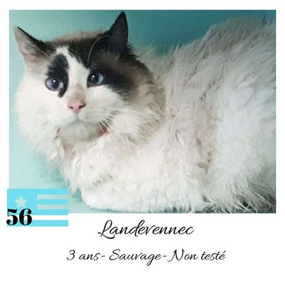 URGENCE EUTHANASIE ! Landevennec est un matou de 3 ans sauvageon (un comportement normal en situation de fourrière) qui vous attend dans une fourrière du 56. ATTENTION SORTIE AU PLUS TARD LE 7/02/2020 (avant euthanasie) ! Pour adopter, c'est facile : ➡️ On se rend sur la page facebook d'Urgence Fourrière de Bretagne (UFB) -> https://www.facebook.com/sosfourrieresbreizh/ ➡️ On vient en message privé sur la page UFB ➡️ On remplit le questionnaire ➡️ Si le questionnaire est validé, on se rend disponible pour la pré-visite ➡️ On se rend aussi disponible pour venir chercher le loulou en fourrière Les chats sortent de fourrière primo-vaccinés et identifiés. Restera à charge de l’adoptant le rappel de vaccin et la stérilisation qui est OBLIGATOIRE. Les femelles en fourrière ayant été trouvées dans la rue, il y a fort à parier que nombre d'entre elles en âge de l'être soient gestantes ... ---- A PROPOS D'URGENCE FOURRIERE DE BRETAGNE (UFB) Nous sommes un COLLECTIF d'ASSOCIATIONS DE PROTECTION ANIMALE (qui rassemble notamment Moustaches et Compagnie, Bêtes de Scène, les Pachas, Chats Libres de Berné, etc, etc....) Le BUT de ce collectif d'associations est donc de SORTIR ces animaux des fourrières surchargées en les faisant ADOPTER de manière LEGALE par des familles ou en leur trouvant des FAMILLES D'ACCUEIL lorsque des places en association se libèrent.