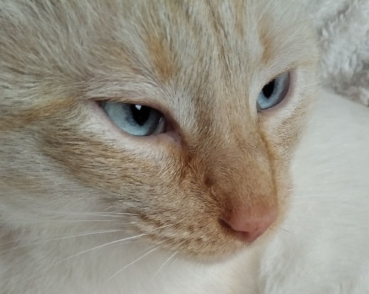 J'allais oublier, je semble avoir une facilité à comprendre l'humain et j'aime discuter. D'ailleurs, lorsque je suis stressé, j'ai tendance à beaucoup miauler, mais la voix douce et les câlins me rassurent et m'apaisent.