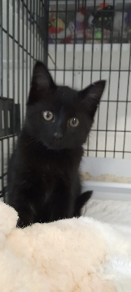 Beltza est un magnifique chaton. Joueur, câlin et véritable machine à ronrons, il fera le bonheur de la famille qui se laissera charmer par son regard or.