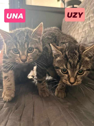 UZY : 3 mois et demi Chatonne la plus craintive des deux, aura besoin de temps pour faire confiance. Très joueuse avec ses jouets et sa soeur. Gourmande et très gentille, malgré la grande crainte elle ne présente aucun signe d'agressivité.