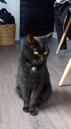 arrivée dans le jardin d'une famille qui la prise sous son aile avec ses chatons.