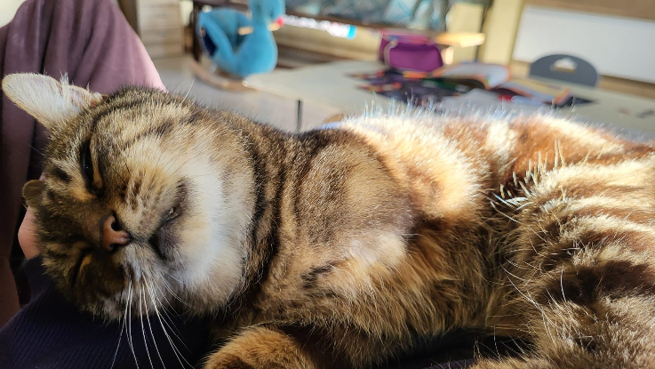 Meuffi est une chatte très très câline, une véritable petite boule d’amour. Si vous recherchiez un chat plutôt calme, avec qui vous pourrez passer vos soirées sur le canapé ou bien avoir une compagnie pour travailler, alors Meuffi est faite pour vous. Elle aime se mettre sur nous et se prélasser au soleil. Elle s'entend bien avec les autres chats et les enfants de sa famille d’accueil.