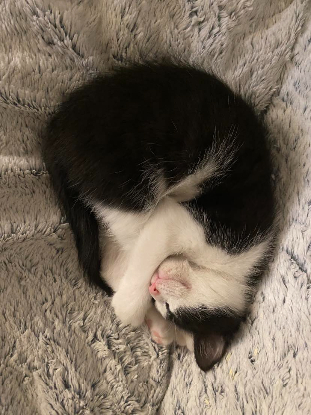 C’est aujourd’hui un chaton très vif et joueur. Il adore courir dans tout l’appartement et jouer avec ses plumes préférées.