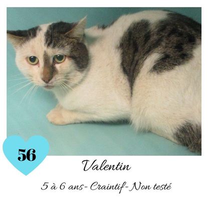 URGENCE EUTHANASIE ! Valentin est un matou de 5-6 ans craintif (un comportement normal en situation de fourrière) qui vous attend dans une fourrière du 56. ATTENTION SORTIE AU PLUS TARD LE 14/02/2020 (avant euthanasie) ! Pour adopter, c'est facile : ➡️ On se rend sur la page facebook d'Urgence Fourrière de Bretagne (UFB) -> https://www.facebook.com/sosfourrieresbreizh/ ➡️ On vient en message privé sur la page UFB ➡️ On remplit le questionnaire ➡️ Si le questionnaire est validé, on se rend disponible pour la pré-visite ➡️ On se rend aussi disponible pour venir chercher le loulou en fourrière Les chats sortent de fourrière primo-vaccinés et identifiés. Restera à charge de l’adoptant le rappel de vaccin et la stérilisation qui est OBLIGATOIRE. Les femelles en fourrière ayant été trouvées dans la rue, il y a fort à parier que nombre d'entre elles en âge de l'être soient gestantes ... ---- A PROPOS D'URGENCE FOURRIERE DE BRETAGNE (UFB) Nous sommes un COLLECTIF d'ASSOCIATIONS DE PROTECTION ANIMALE (qui rassemble notamment Moustaches et Compagnie, Bêtes de Scène, les Pachas, Chats Libres de Berné, etc, etc....) Le BUT de ce collectif d'associations est donc de SORTIR ces animaux des fourrières surchargées en les faisant ADOPTER de manière LEGALE par des familles ou en leur trouvant des FAMILLES D'ACCUEIL lorsque des places en association se libèrent.