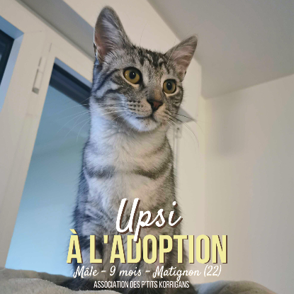 Upsi a été recueilli tout petit par une famille très sérieuse et soucieuse de son bien-être. Malheureusement, l’entente avec leur minette ne s’est pas faite, la puce le trouvait trop dynamique et remuant, et se cachait beaucoup. C’est donc le cœur lourd que cette famille a confié Upsi à notre association, afin de lui trouver une famille sérieuse où il pourrait s’épanouir.