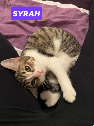 Chatonne tigrée et blanche, très douce et très très câline. Elle vous fait craquer avec son regard d’ange quand elle vous réclame des caresses. Elle adore se blottir contre vous pour s’endormir en ronronnant pour une session relaxation garantie.