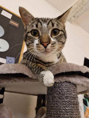 Whisky n'aime pas être seul et apprécie la compagnie d'un autre chat. Il est OK chiens aussi.