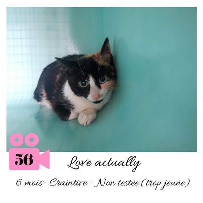 URGENCE EUTHANASIE ! Love Actually est une minette de 6 mois craintive (un comportement normal en fourrière) qui vous attend dans une fourrière du 56. ATTENTION SORTIE AU PLUS TARD LE 21/02/2020 (avant euthanasie) ! Pour adopter, c'est facile : ➡️ On se rend sur la page facebook d'Urgence Fourrière de Bretagne (UFB) -> https://www.facebook.com/sosfourrieresbreizh/ ➡️ On vient en message privé sur la page UFB ➡️ On remplit le questionnaire ➡️ Si le questionnaire est validé, on se rend disponible pour la pré-visite ➡️ On se rend aussi disponible pour venir chercher le loulou en fourrière Les chats sortent de fourrière primo-vaccinés et identifiés. Restera à charge de l’adoptant le rappel de vaccin et la stérilisation qui est OBLIGATOIRE. Les femelles en fourrière ayant été trouvées dans la rue, il y a fort à parier que nombre d'entre elles en âge de l'être soient gestantes ... ---- A PROPOS D'URGENCE FOURRIERE DE BRETAGNE (UFB) Nous sommes un COLLECTIF d'ASSOCIATIONS DE PROTECTION ANIMALE (qui rassemble notamment Moustaches et Compagnie, Bêtes de Scène, les Pachas, Chats Libres de Berné, etc, etc....) Le BUT de ce collectif d'associations est donc de SORTIR ces animaux des fourrières surchargées en les faisant ADOPTER de manière LEGALE par des familles ou en leur trouvant des FAMILLES D'ACCUEIL lorsque des places en association se libèrent.