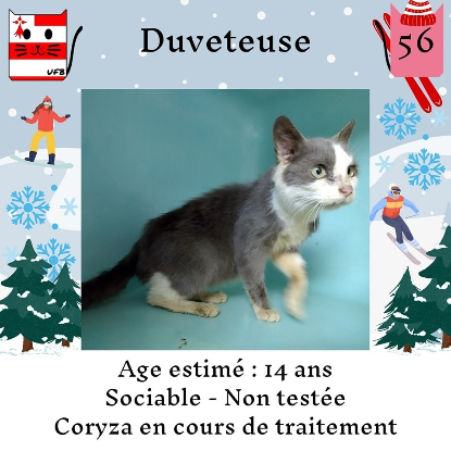 Duveteuse, femelle de 14 ans sociable qui vous attend dans une fourrière du 56. ATTENTION SORTIE AU PLUS TARD LE 22/12/2023 (avant euthanasie) !