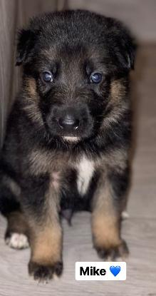 Mike sera un grand chien qui pèsera à l'âge adulte entre 28 et 38 kilos. Le papa étant un berger allemand et la maman berger allemand avec un croisement malinois.