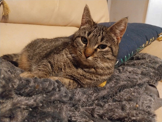 Urricane a été la première à aller à la découverte de la maison et des autres chats de sa famille d'accueil. Tout s'est bien passé. Elle est hyper facile à vivre et a un caractère doux. Nous ne connaissons pas ses ententes avec les chiens. Urricane n'aura pas forcément besoin d'un extérieur. Elle s'adaptera très bien à une vie en intérieur. Elle pourra être le seul chat de la maison mais saura également vivre avec un copain ou une copine chat comme elle est très sociable.