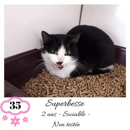 URGENCE EUTHANASIE ! Superbesse est une minette de 2 ans sociable qui vous attend dans une fourrière du 35. ATTENTION SORTIE AU PLUS TARD LE 28/02/2020 (avant euthanasie) ! Pour adopter, c'est facile : ➡️ On se rend sur la page facebook d'Urgence Fourrière de Bretagne (UFB) -> https://www.facebook.com/sosfourrieresbreizh/ ➡️ On vient en message privé sur la page UFB ➡️ On remplit le questionnaire ➡️ Si le questionnaire est validé, on se rend disponible pour la pré-visite ➡️ On se rend aussi disponible pour venir chercher le loulou en fourrière Les chats sortent de fourrière primo-vaccinés et identifiés. Restera à charge de l’adoptant le rappel de vaccin et la stérilisation qui est OBLIGATOIRE. Les femelles en fourrière ayant été trouvées dans la rue, il y a fort à parier que nombre d'entre elles en âge de l'être soient gestantes ... ---- A PROPOS D'URGENCE FOURRIERE DE BRETAGNE (UFB) Nous sommes un COLLECTIF d'ASSOCIATIONS DE PROTECTION ANIMALE (qui rassemble notamment Moustaches et Compagnie, Bêtes de Scène, les Pachas, Chats Libres de Berné, etc, etc....) Le BUT de ce collectif d'associations est donc de SORTIR ces animaux des fourrières surchargées en les faisant ADOPTER de manière LEGALE par des familles ou en leur trouvant des FAMILLES D'ACCUEIL lorsque des places en association se libèrent.