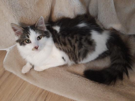 Unny est arrivé dans sa famille d'accueil avec son copain de fourrière Under que nous vous présenterons bientôt. La quarantaine, c'est plus sympa avec un copain pour jouer. C'était un chaton timide et le plus peureux des 2, un peu plus sur la réserve mais on sentait qu'il était impatient de venir chercher des câlins. Et avec de la patience, de la présence, de la douceur et beaucoup de moemnts de jeux, Unny est désormais un chaton qui aime les câlins, les caresses et le contact. Il aime les genoux mais c'est lui qui décide. Unny adore par dessus tout les jeux avec son copain et sa famille d'accueil. Il adore courir après les balles et partir à la chasse aux croquettes. Il aime aussi être brossé car Unny a une jolie "fourrure" à entretenir.