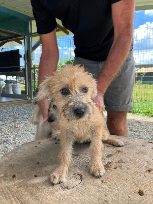 Je m’appelle Hilton, je suis un chiot femelle croisée griffon de 6 mois (née en juillet 2023). Nous avons peu d’éléments de mon histoire mais j’ai été déposée à la fourrière avant d’arriver au sanctuaire Doggy Oasis International. Je suis déjà vaccinée, stérilisée et identifiée. Je fais actuellement 3 kilos, mais je vais encore grandir, je serai une petite/moyenne chienne