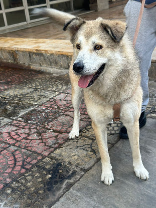 WOLFY mâle croisé né en mars 2021. Il est castré, vacciné et déparasité. Il est identifié par micro puce n°900215006426792. Il pèse 30Kg.