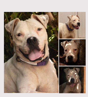 Je me prénomme Crystal. Je suis une sublime croisée dogue avec une jolie robe blanche.