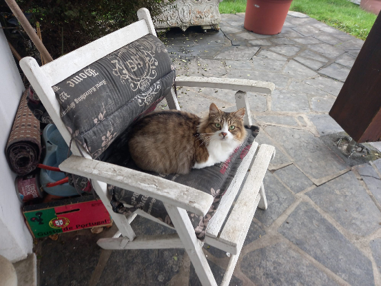Carla a mis bas dans le jardin d'un particulier, tous ses chatons ont été adoptés, il ne manque plus qu'elle ! Elle mérite vraiment le bonheur, elle est adorable.