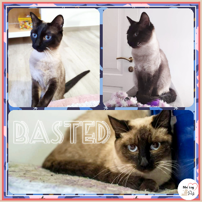 BASTED est une jolie chatte encore très timide avec les humains. Elle se cache mais une fois attrapée, elle se laisse caresser.